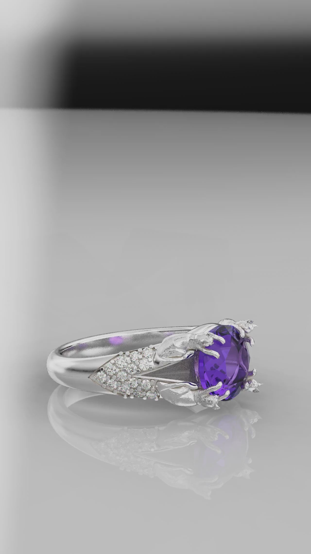 11mm Cat Prong Ring Lavender Amethyst with Diamonds LIMITED OFFER